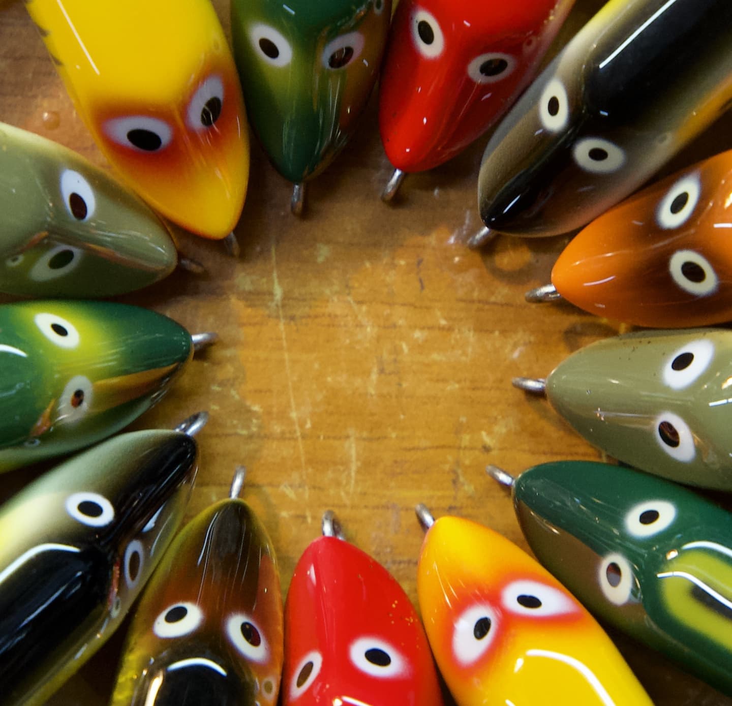 *海外製ルアーが持つ雑さや、エラー品の可愛さをあえて愛でるような楽しみ方ができるように、オールド風に味付けしたペイントのルアーたちはあえて違いを作るような塗装をしてあります。基本色は存在しますが、同じ色は存在しません。